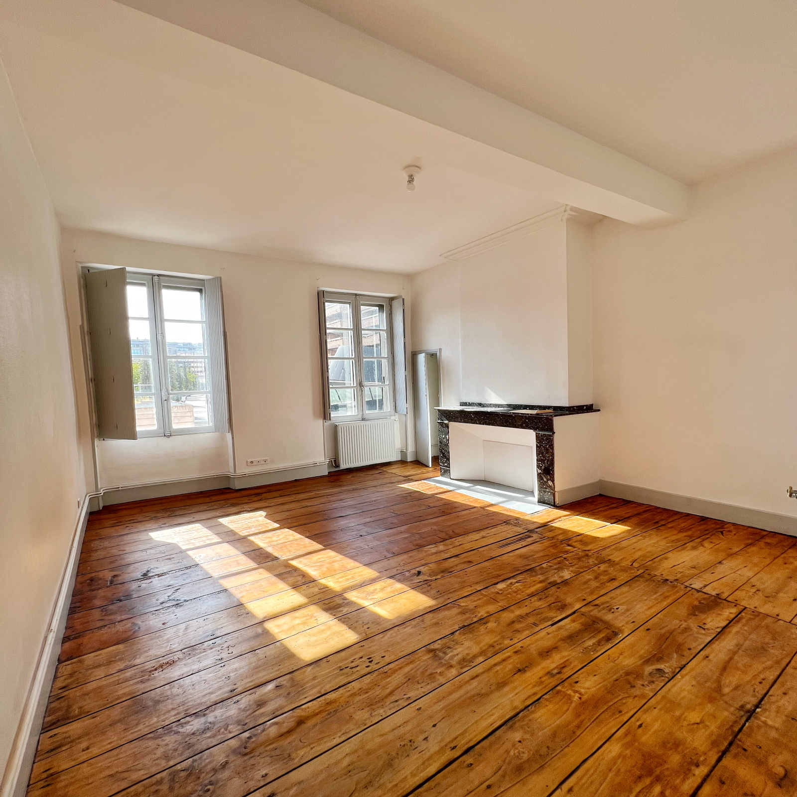 Ce bel immeuble toulousain de 1850 accueille au 1er étage avec ascenseur, ce bel appartement T2 lumineux.