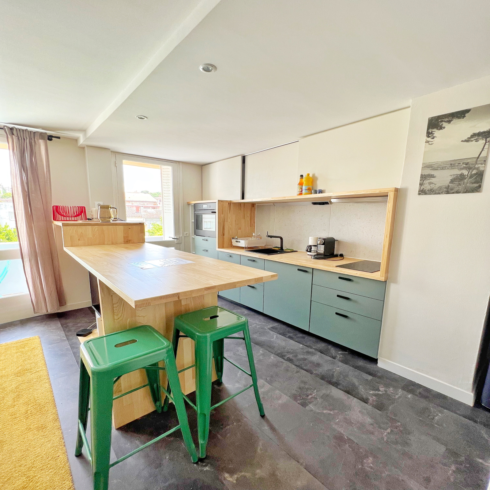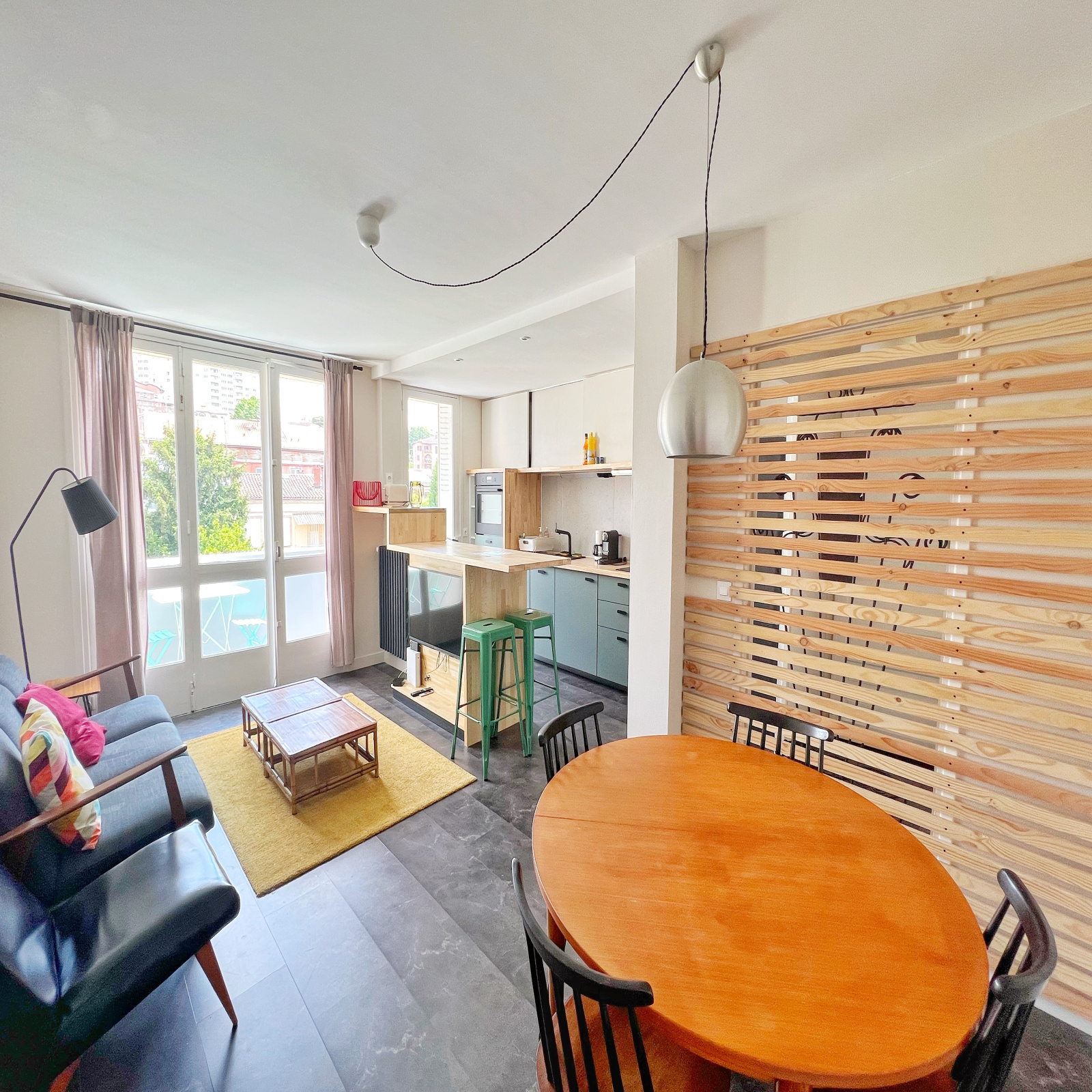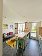 Il comprend, une entrée, un séjour/ cuisine / salle à manger ouvert, un coin nuit avec 2 chambres et une salle d'eau, et un WC séparé.