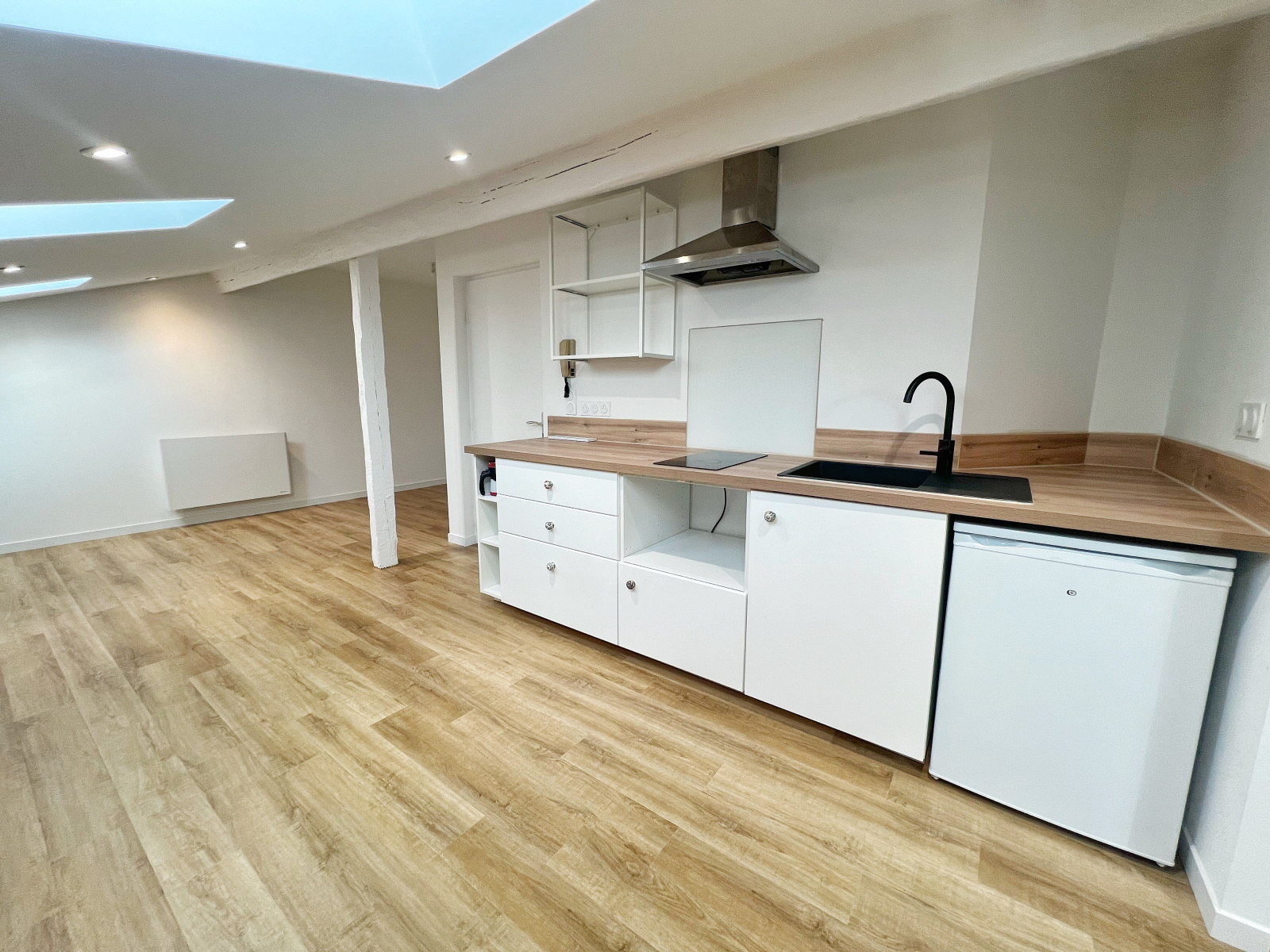 Il comprend, un séjour/cuisine aménagé, un espace nuit et une salle d'eau avec WC.