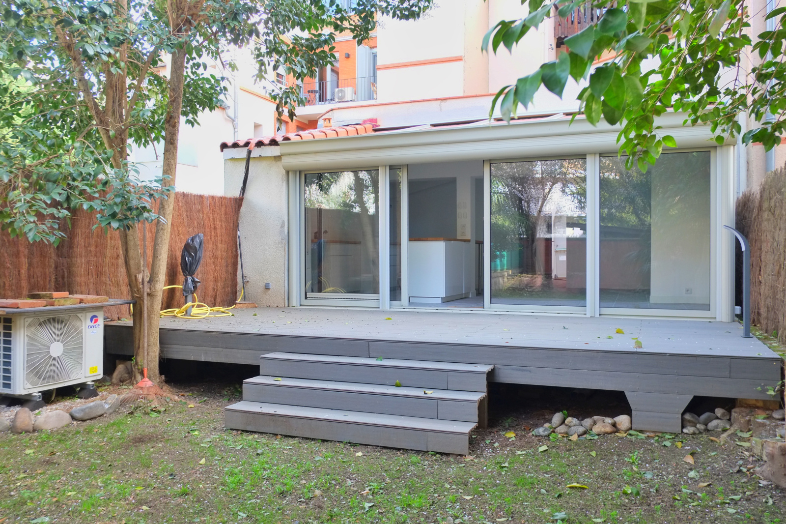 Au fond d'une petite copropriété, elle comprend : 2 chambres avec placard, une salle d'eau avec douche à l'italienne, un WC séparé, placard dans le dégagement, une belle pièce de vie avec briques et galets, cuisine fonctionnelle entièrement équipée, terrasse et jardin de plus de 80m².
