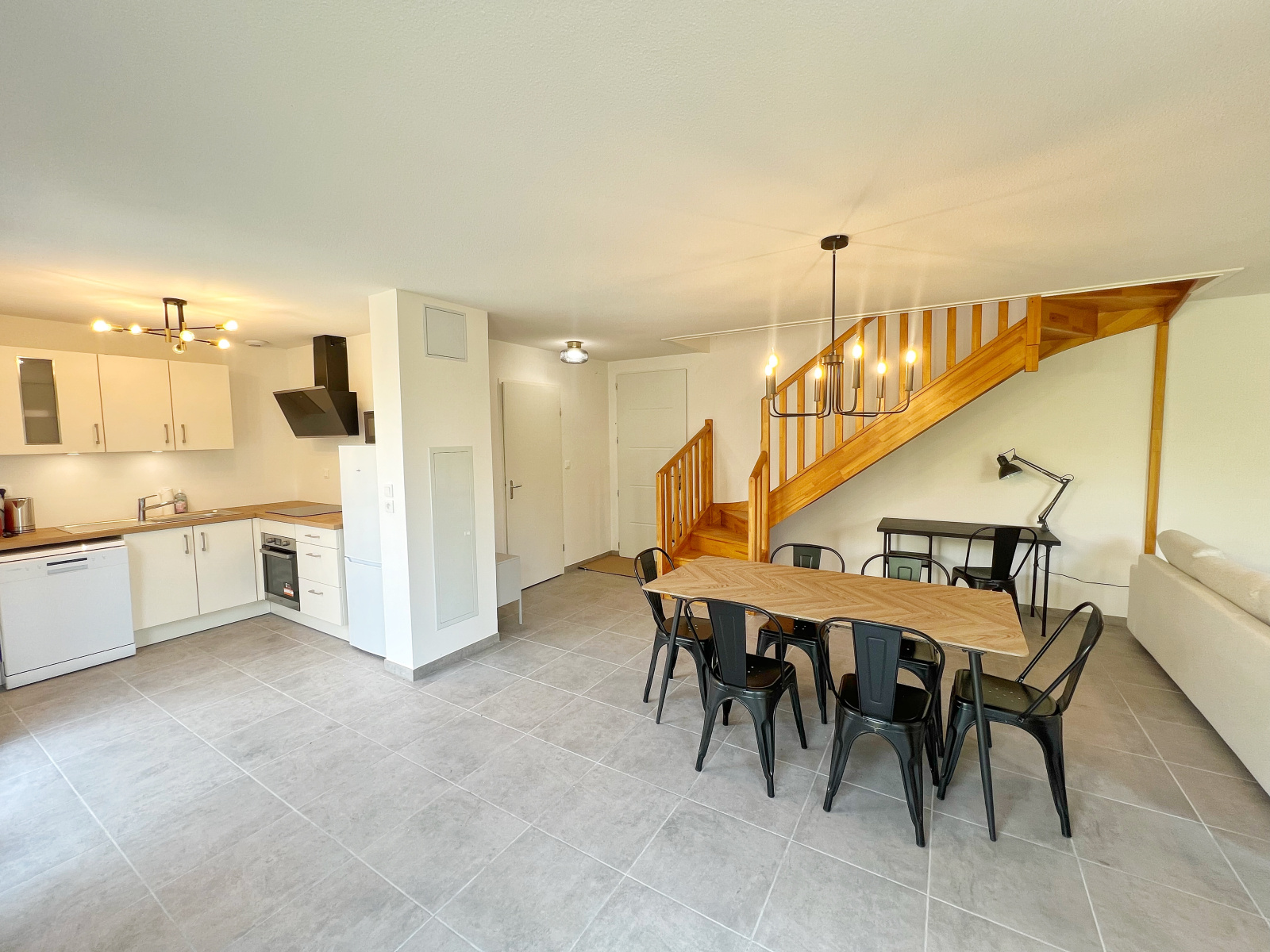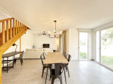 Au rez-de-chaussée, vous profiterez d'une entrée accueillante, d'une belle pièce de vie lumineuse donnant sur une terrasse et un jardin privatif, ainsi que d'une cuisine américaine entièrement équipée, d'une salle d'eau et de WC séparés.