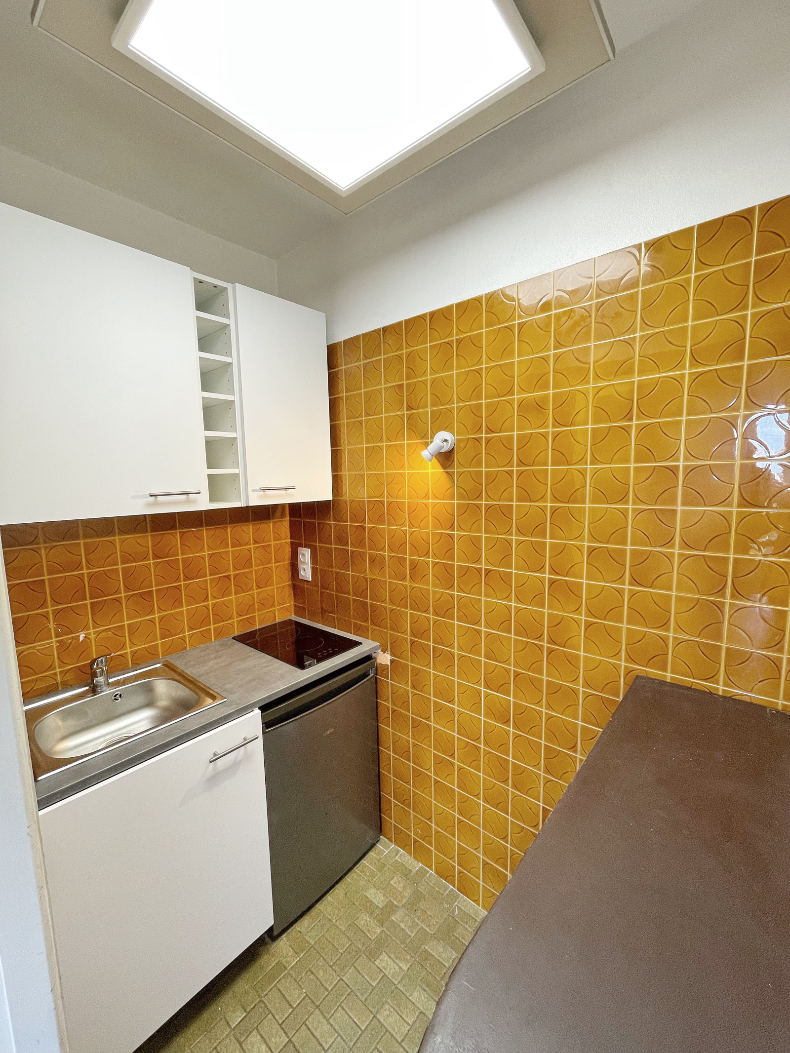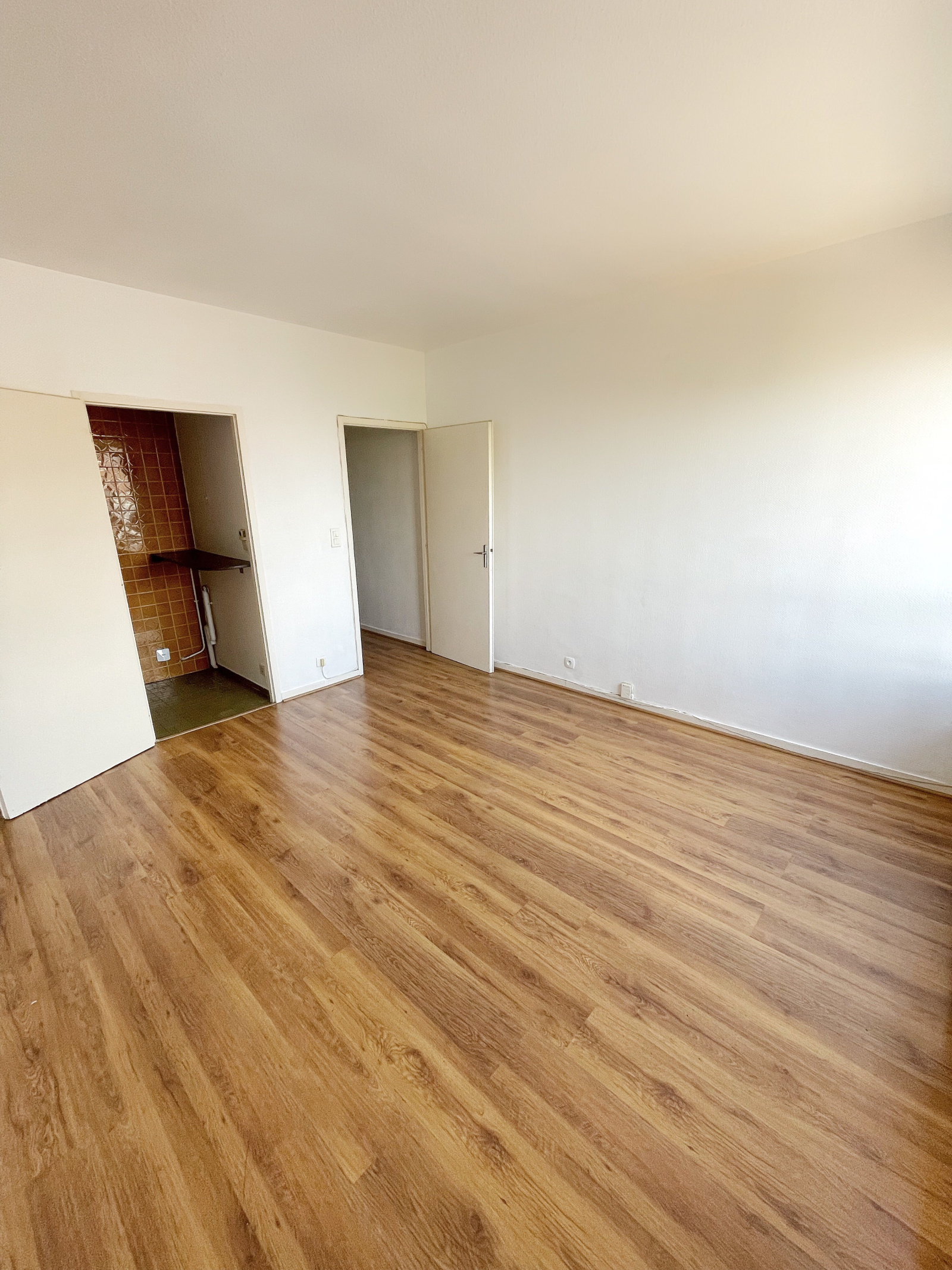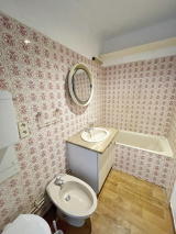 Entrée avec placard, pièce de vie, cuisine séparée équipée, salle de bains avec baignoire et WC.