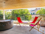 A l'étage sur 2 niveaux : un vaste espace de vie triplement exposé avec terrasse de 18m² et un espace nuit avec 4 chambres, 1 salle de bains et 1 salle d'eau ainsi que nombreux rangements.